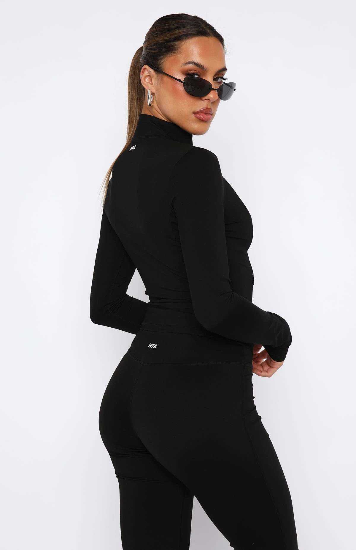 Meet your match. Give your gym edit an upgrade with the Bay Run Jacket Black! Features a high neck collared design, hidden centre front zipper, front pockets, tailored for a snug fit and full length. Pair with the Go Getter High Waisted Leggings Black for a snatched look! Â