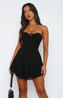 Slay in stocking in the Boulevard Baby Mini Dress in Black. This strapless stocking mini dress features mini length, cut out bust/midriff design with diamanté detail, backless design and delicate sheer fabric with stretch so one size fits most. Pair with cowboy boots and sunglasses for a cool girl festival fit!