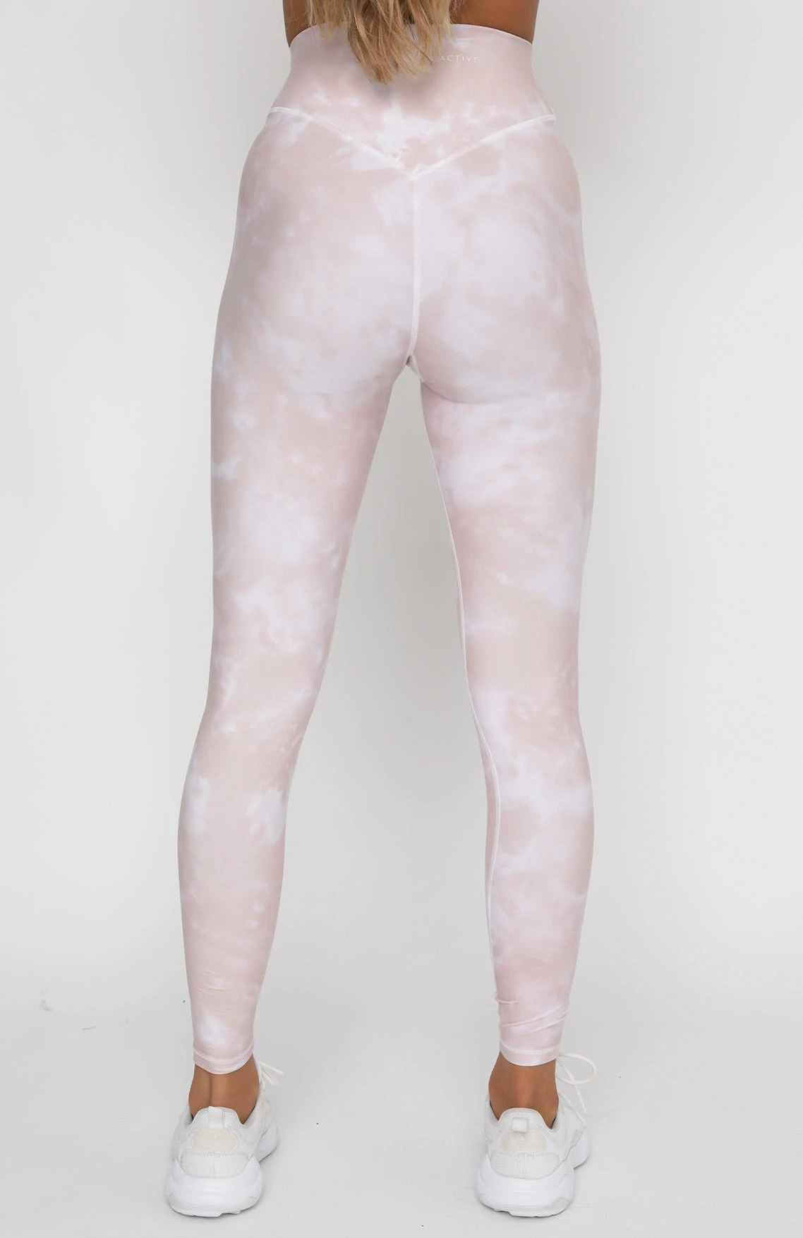 Brighten up your workout in the Comfort Zone Leggings in Dusty Tie Dye. These training tights are high waisted, with a flattering wide waistband, smooth flat lock seam detail, triangle gusset for comfort & freedom of movement,  V back seam detailing, tie dye print and are an ankle grazer length.