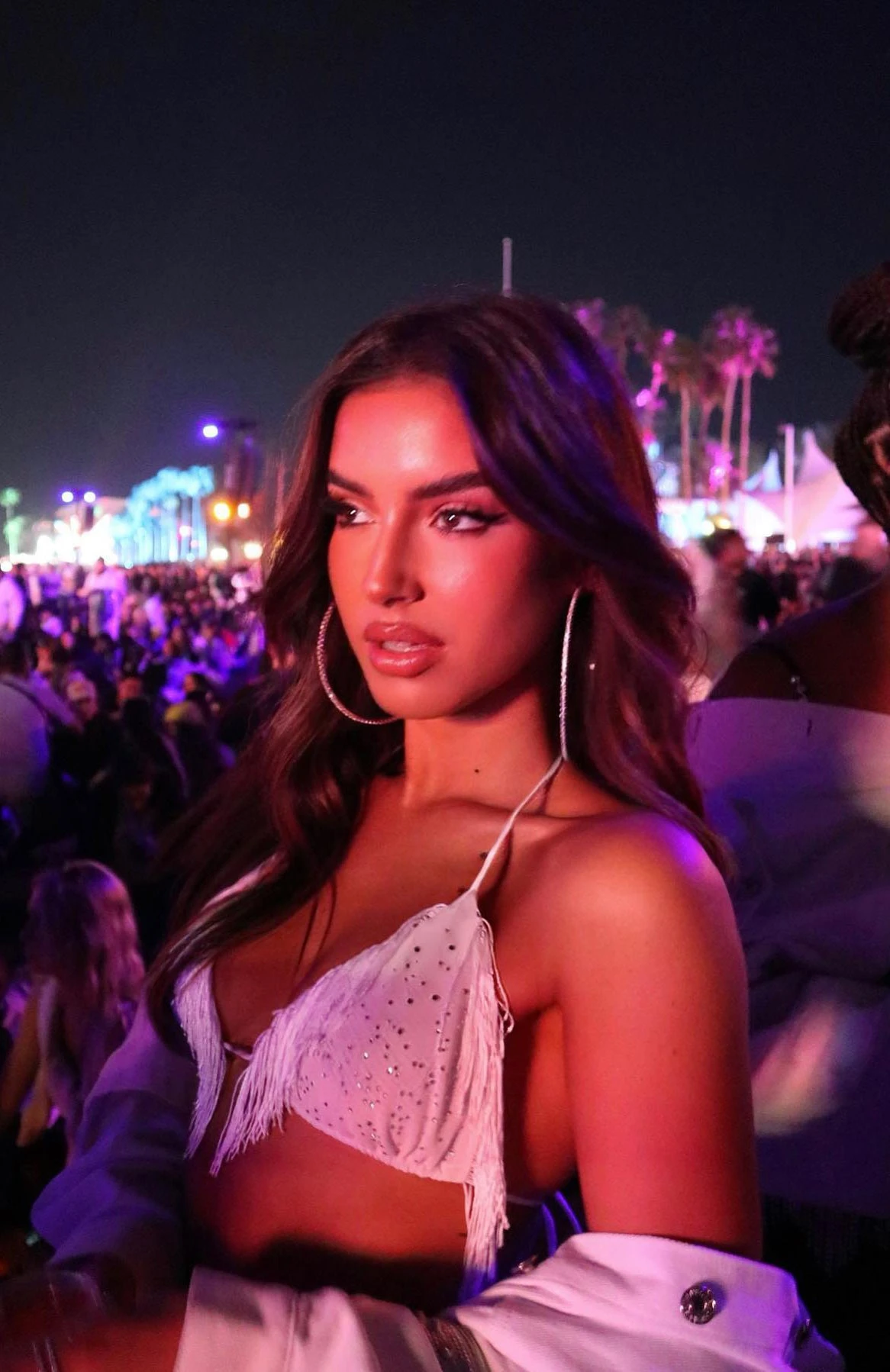 In our festival era in the Fall For You Top in White. Featuring halter style, adjustable straps and lined, structured crystal rhinestone fabric with tassle detail. Pair with the matching Call Me Tonight Hot Pants and knee-high boots for a stand-out look!