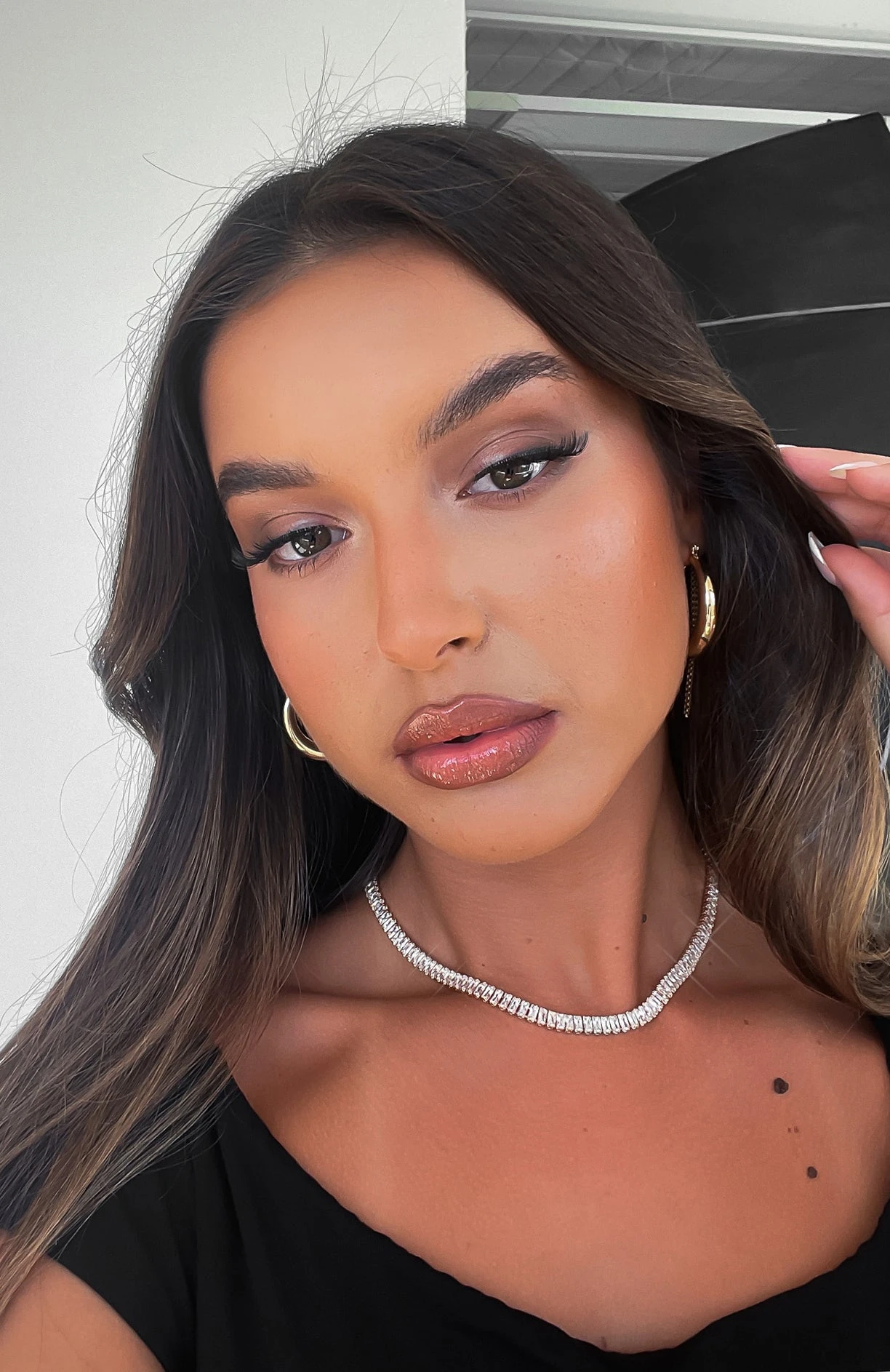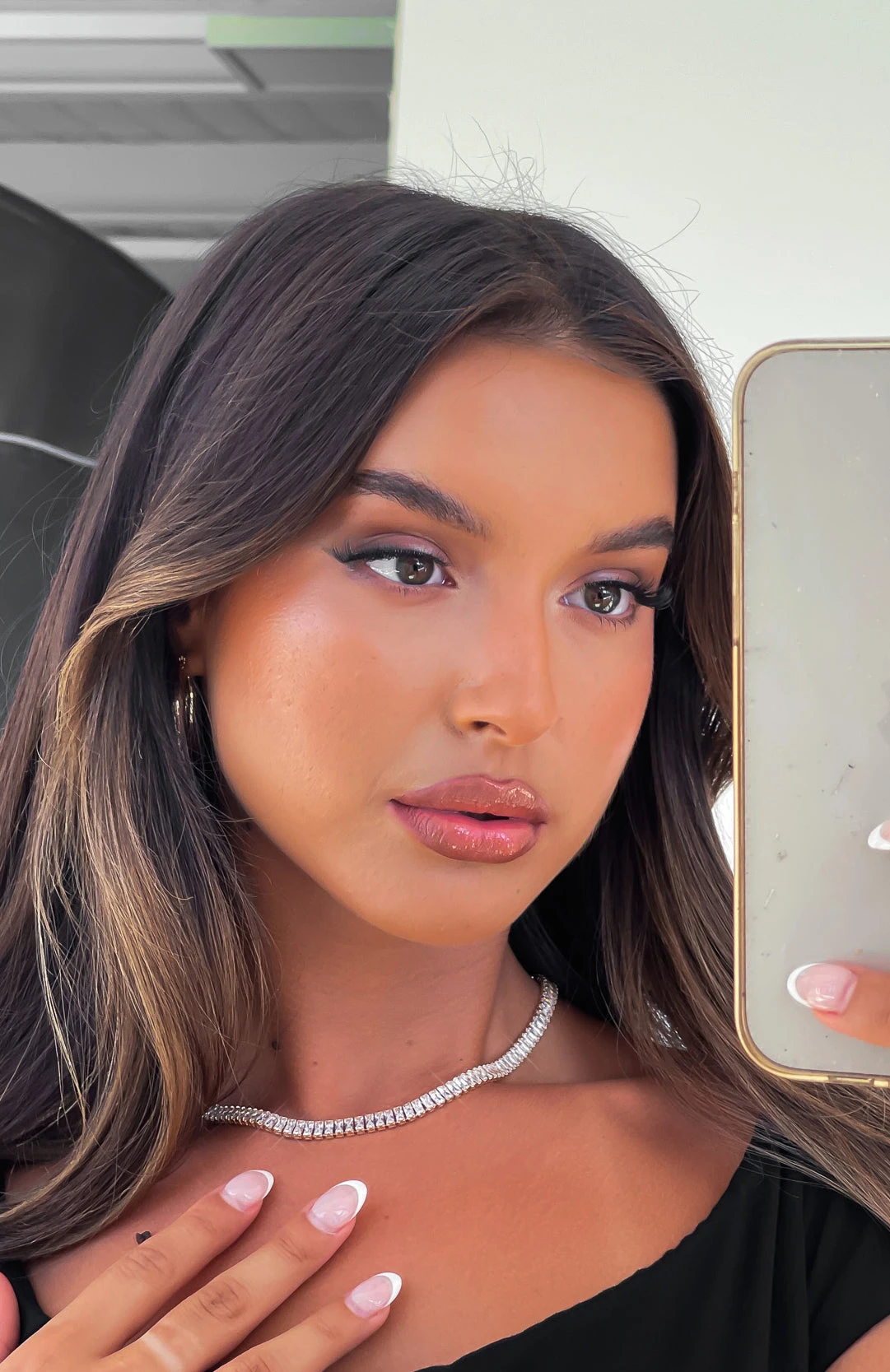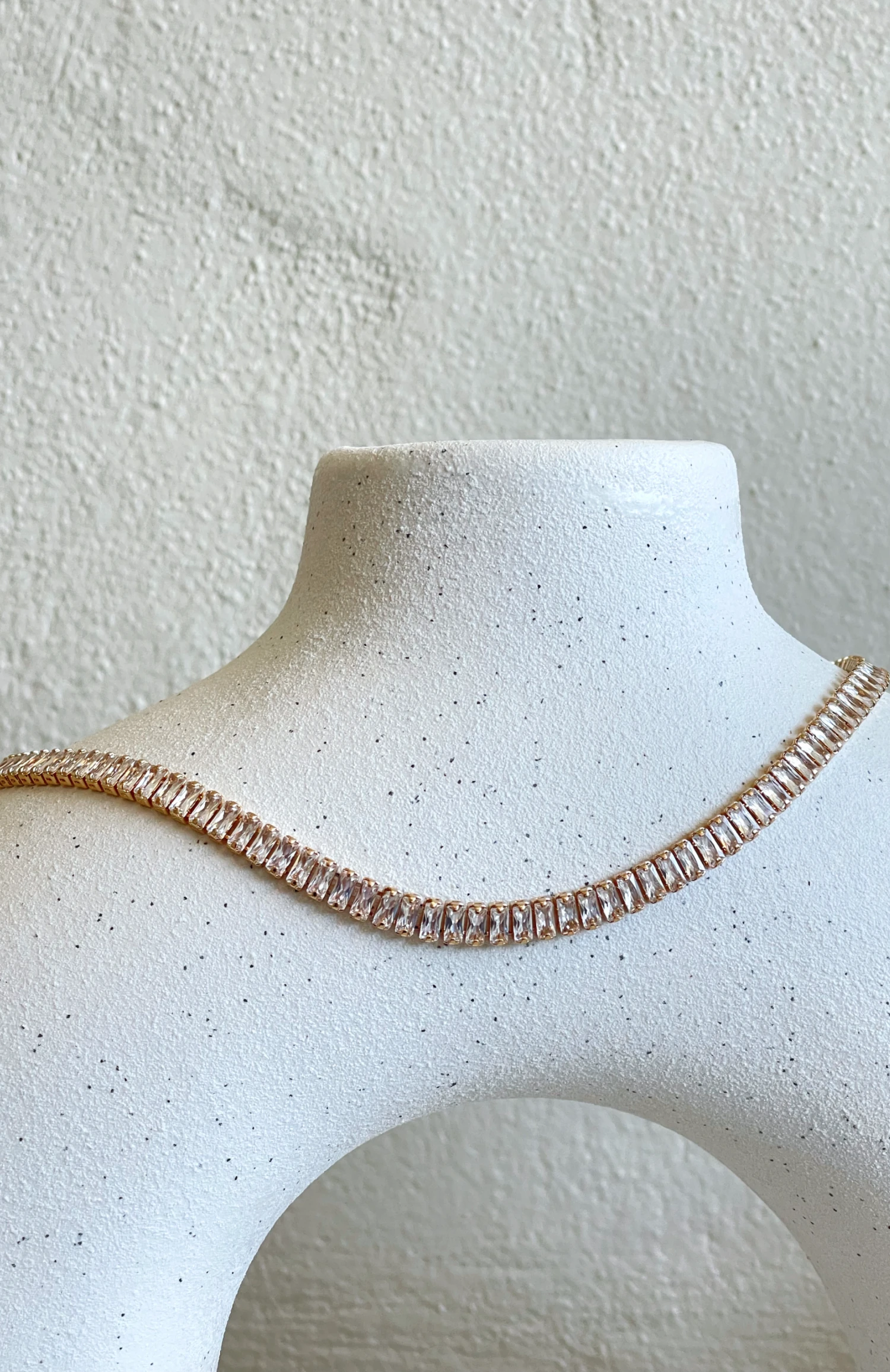 The Maverick Tennis Necklace in Gold will elevate your look! Featuring a thin, flat gold chain with diamanté detail. We are in love!Â