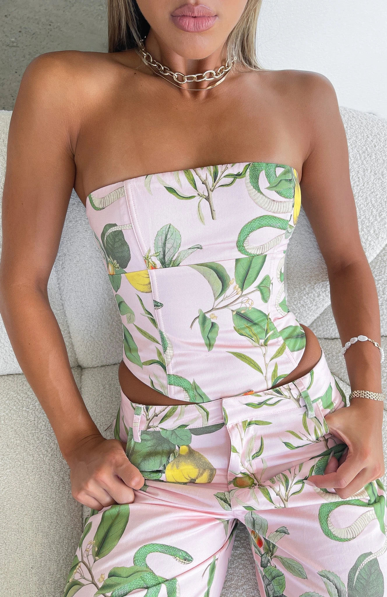 You don’t need to roll the dice on this one, we promise you’ll love it! The No Drama Bustier in Pink Serpent features boning in bodice, zipper centre back. curved edge, grip tape and lined fabric. Complete the look with the matching Here To Stay Pants and clear heels for a look that will turn heads.