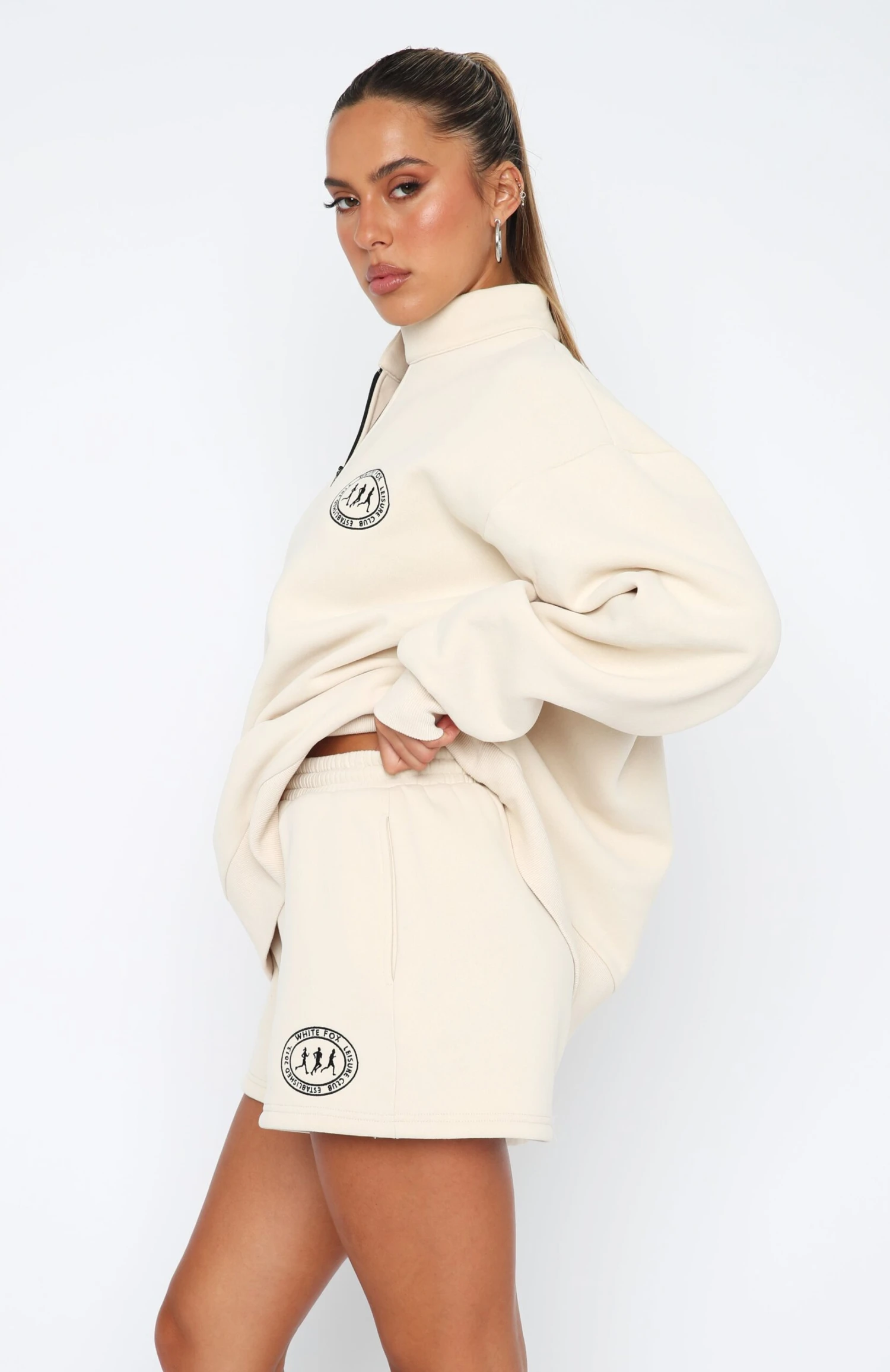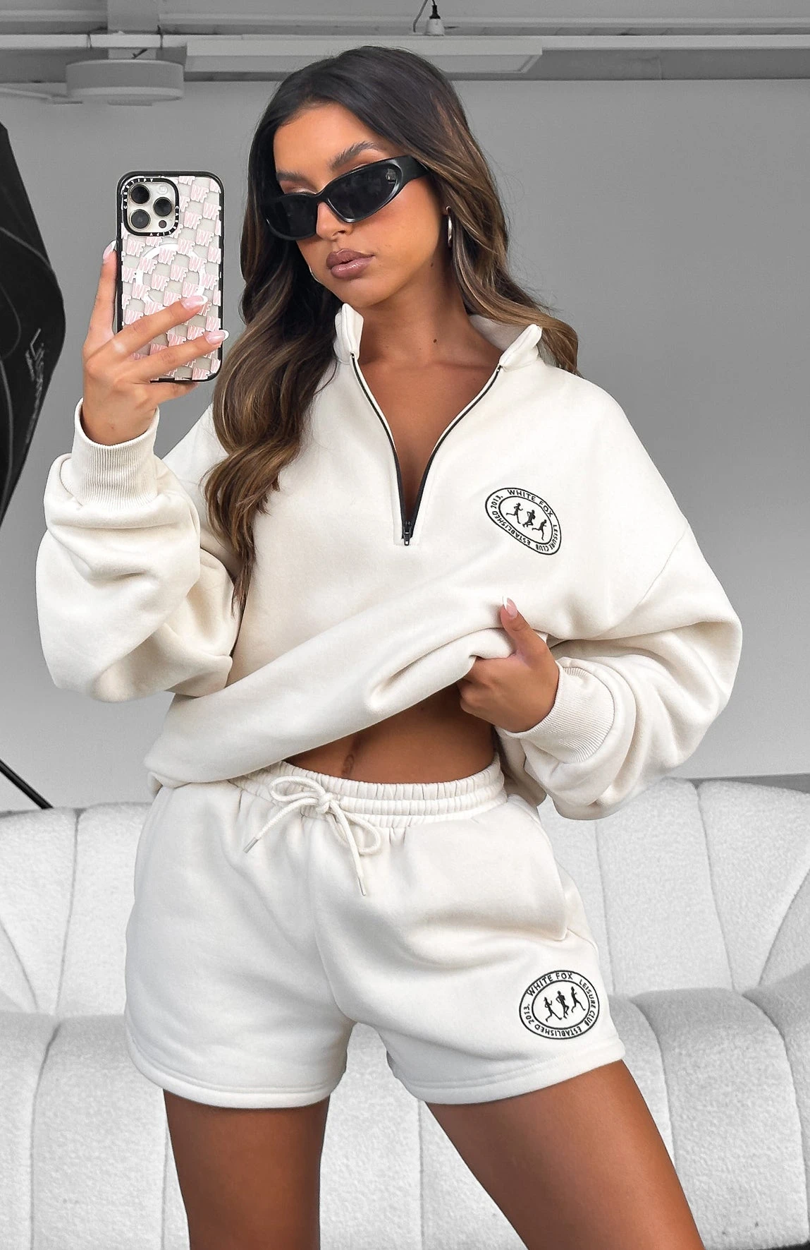 Our new go to fit the Part Of The Story Lounge Shorts inĀ Pebble.Ā FeaturingĀ a loose relaxed fit with an elasticated high waistband with drawstring, side pockets, soft fleece fabric for extra comfort and print logoĀ front side.Ā Just add theĀ Part Of The Story Oversized Sweater and sneaks.Ā