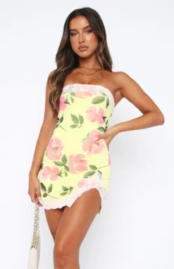 Loving Yourself Strapless Mini Dress Lemon Rose