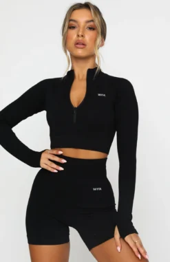 Seamless Long Sleeve Sports Crop Black