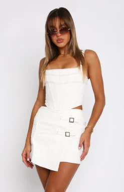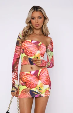 The Sound Of Summer Crop in Ocean Spray gives us all the vibes! This strapless crop features grip tape and cropped length. Complete the look with the matching Catch My Wave Mini Skirt and platform slides for a dreamy combo.