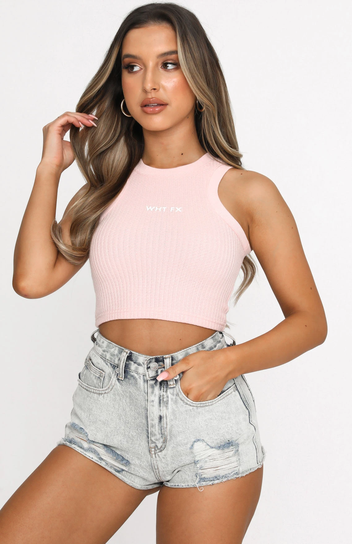 We are in love with the True Romance Crop in Baby Pink. This fitted crop top is a racer back design, with high scooped neckline, stretch waffle fabric, printed logo centre front and is lined to avoid sheerness. Complete the look with jeans and white sneakers for a cute everyday look.Â